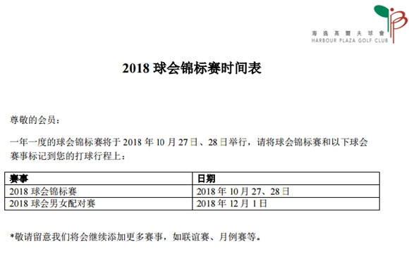 东莞海逸高尔夫2018年球会锦标赛时间表
