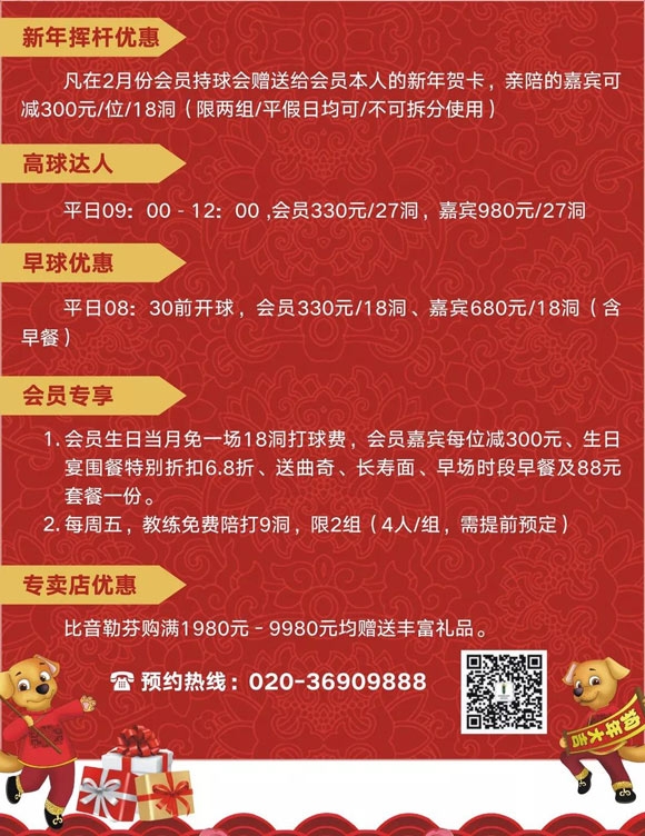 300元/18洞 广州九龙湖高尔夫2018年2月优惠活动