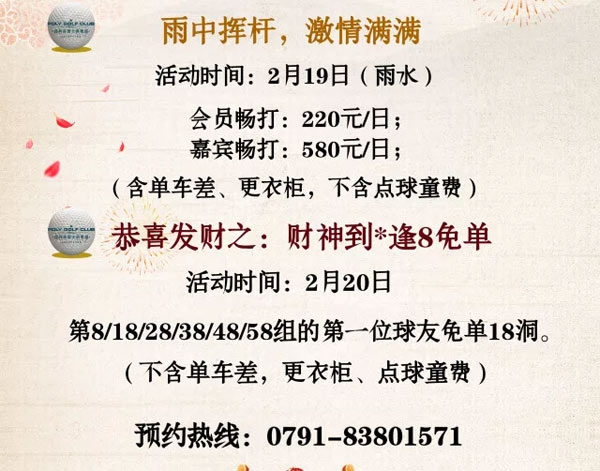 南昌保利高尔夫2018年快乐新春年之“雨水、财神到”