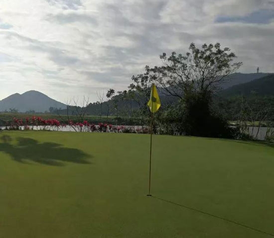 2、最大的果岭A场4号,面积达1100平方米,最大、最长的发球台A场4号面积达1500平方米、长度180码