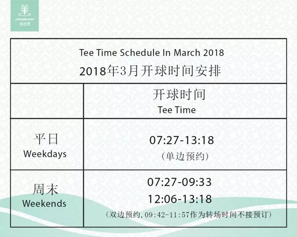 江苏常州金沙湾高尔夫俱乐部3月TeeTime安排