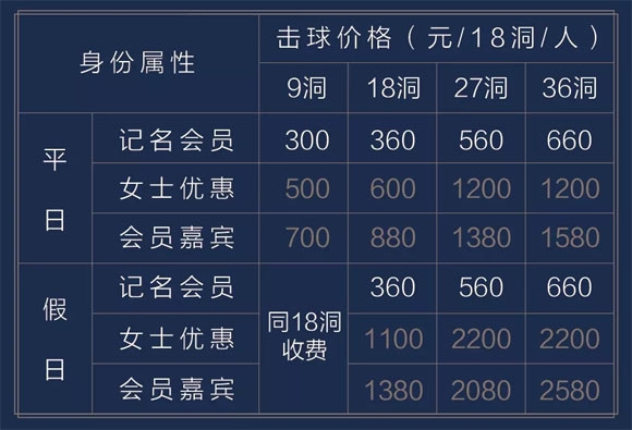 以上价格含击球果岭费、球僮费、球车费及设施费,不含球僮小费;
