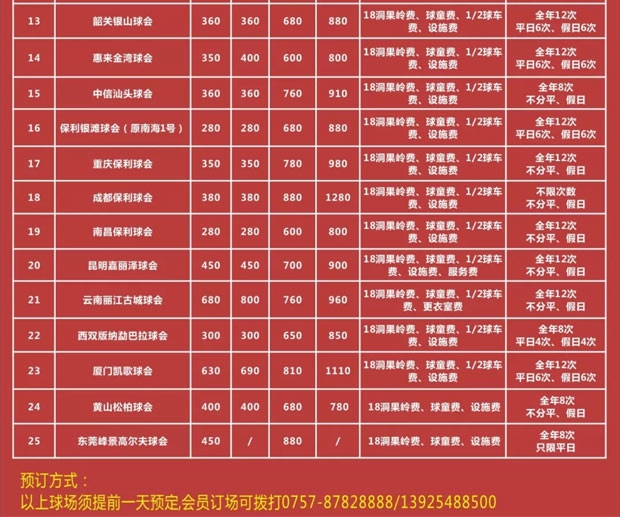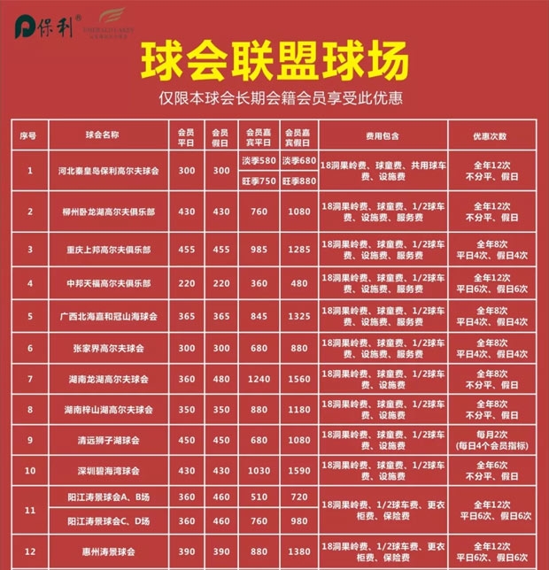 持有本球会长期会籍的会员方可享受以上联盟球场的待遇。
