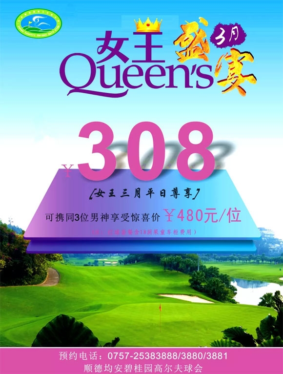 308元/人 均安碧桂园高尔夫球会3月女王盛宴