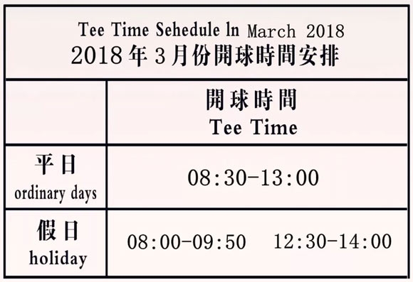 随着气温的逐渐回暖,又到了春意盎然、畅享挥杆的季节,为了给您及嘉宾提供更多感受惬意初春的机会。2018年3月份开球时间(Tee-Time)安排如下: