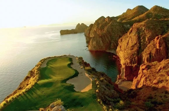 “令人仿佛置身科罗拉多。” 里斯·琼斯说。在惊人的美景中,多样性和可打性完美融合。尤其是多个壮美与挑战并存的三杆洞。其中有一洞更是让人觉得值回旅程——第17洞,178码的三杆洞,海拔比科尔特斯海面高出76米。这一洞一目了然,巨大的岩石废墟,沙质荒漠一般,任何一杆仿佛都会将球遗失在汪洋的“水墓”中。里斯·琼斯是这么评价这一洞的:“我参与设计过的球洞中最自然最特别的球洞。”