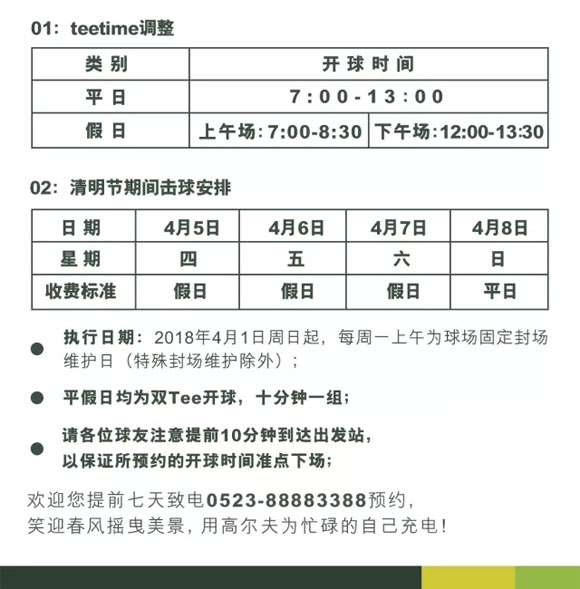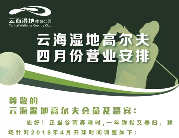 江苏泰州华侨城云海湿地高尔夫4月份营业安排