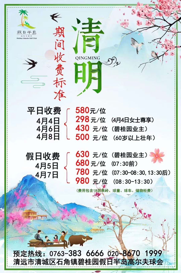 清远市碧桂园假日半岛高尔夫球会清明期间收费标准