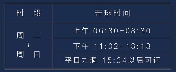 平假日均为双Tee开球,八分钟一组;