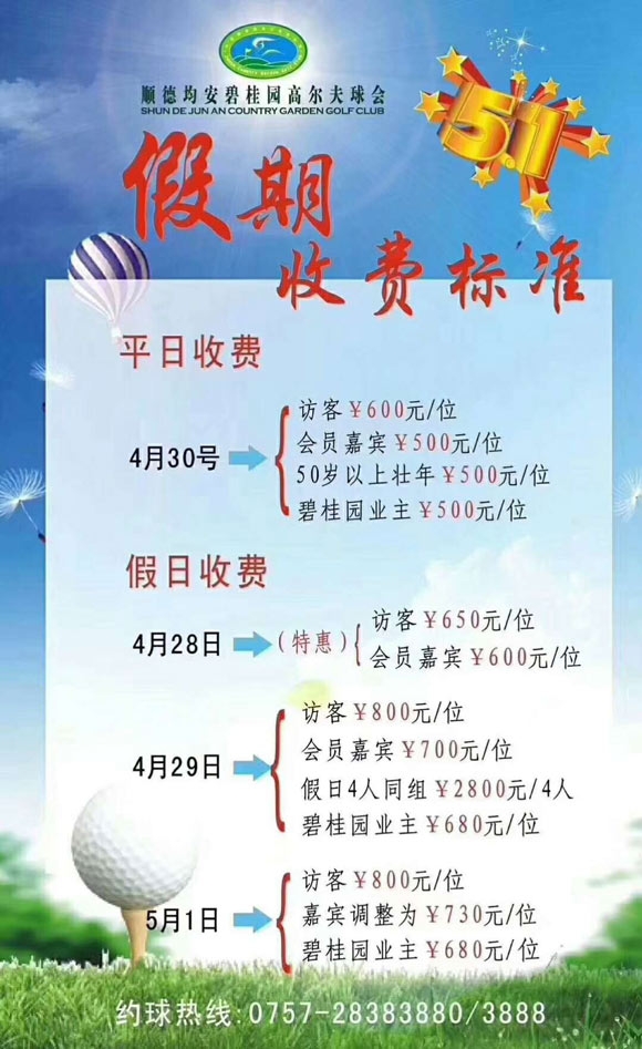 顺德均安碧桂园高尔夫球会五一收费标准