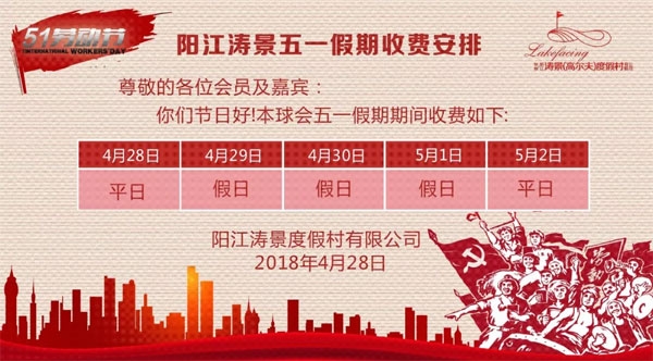 以下为阳江涛景高尔夫球会五一假期收费情况: