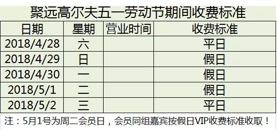 聚远高尔夫俱乐部五一期间收费标准如下: