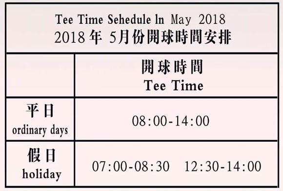 缤纷五月,温暖洒入心扉,阳光明媚和蔼。为了给您和嘉宾提供更多畅享挥杆的机会,2018年5月份的打球时间作如下调整: