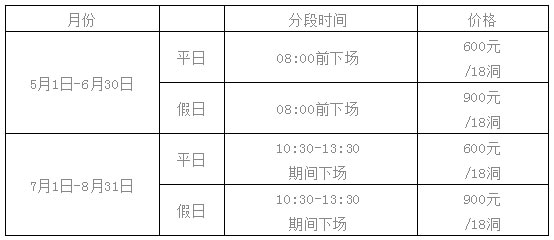 A、以上特惠价格含(果岭费、球车费、球童费及更衣室费),单人单车需加收110元/18洞,不分单双包。
