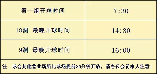 注:各位会员家人,本周球会不接受预订,给您带来不便敬请谅解!