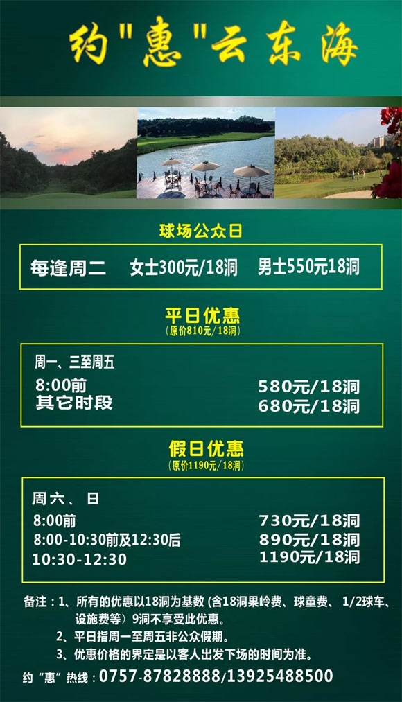 女士300元 约“惠”佛山保利云东海高尔夫球会