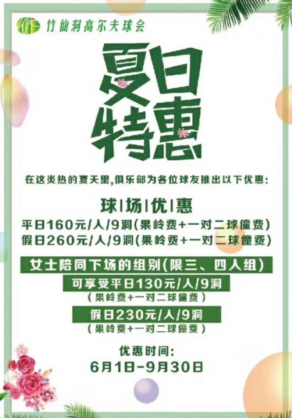 珠海名人高尔夫竹仙洞俱乐部夏日特惠 160元/9洞