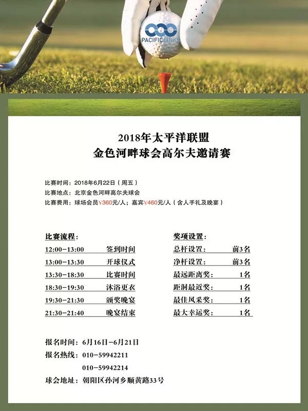 2018年太平洋联盟金色河畔球会高尔夫邀请赛即将拉开帷幕,这片土地上是我们多少球友梦开始的地方,现在的她 依然神秘美丽并且充满无限遐想......我们期待您带着梦想来飞翔。金色团队将以饱满的热情呈现给您一个不一样的“6月·金色河畔”