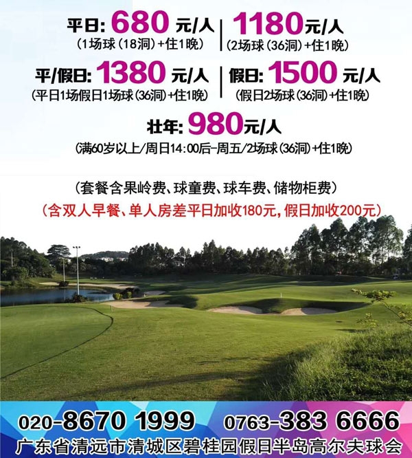 碧桂园·假日半岛高尔夫“住打套餐” 680元1晚1场球