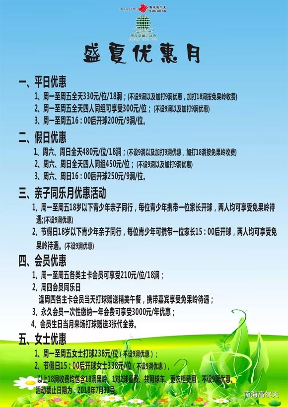 300元/人 佛山南海高尔夫球会盛夏优惠月