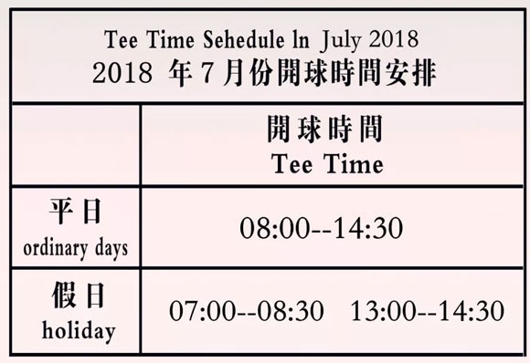 为了给会员和嘉宾提供更为舒适的打球时间,悦达射阳岛高尔夫球会2018年7月份开球时间相应调整。
