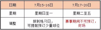 恒大肇庆高尔夫俱乐部7月15-20日球场营运及观赛安排