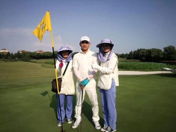 同行的99号球童,赵芸芸,前一天就跟王总说,我跟你全程,不换了,这180洞就真的没再换过球童。俱乐部准备了足够马力的球车,准备好足够的电力,半途派了开车技术精良57号的魏玄帮忙开车。就这样,一路三人行!