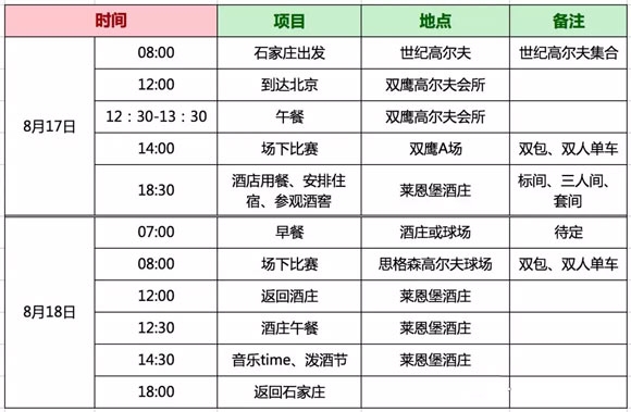 地点:北京双鹰高尔夫俱乐部、北京思格森高尔夫俱乐部、莱恩堡酒庄
