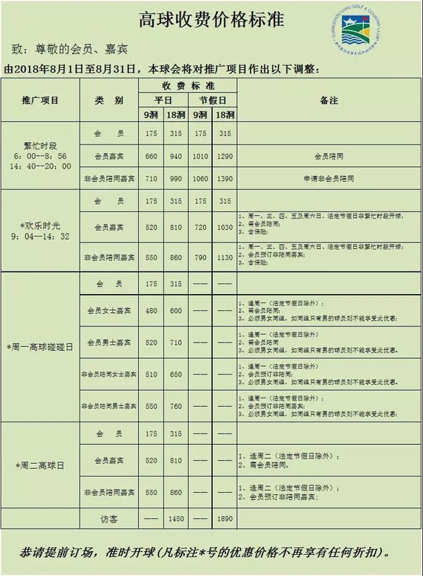 广州麓湖高尔夫捌月你好!高球收费标准