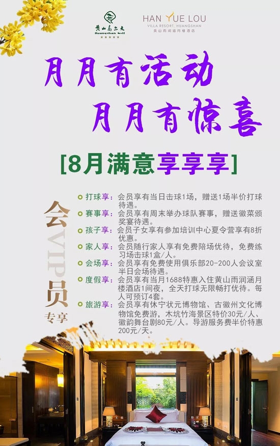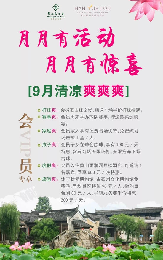 安徽黄山松柏高尔夫球会8月、9月会员专享礼遇活动