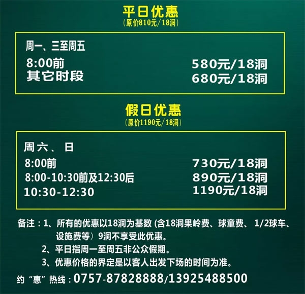 平日580元 约“惠”佛山保利云东海高尔夫球会