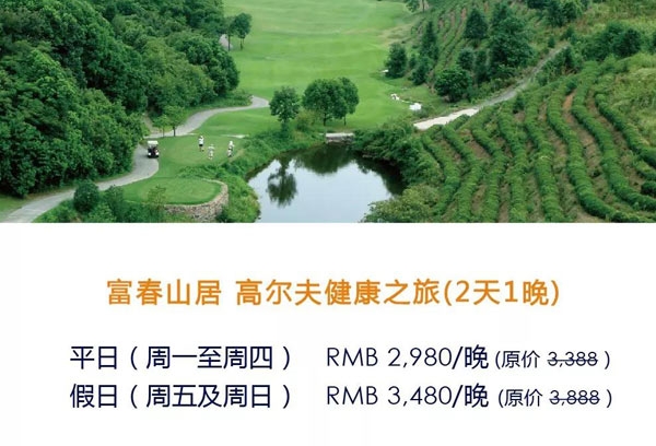2980元/人 杭州富春山居两天一晚高尔夫健康之旅