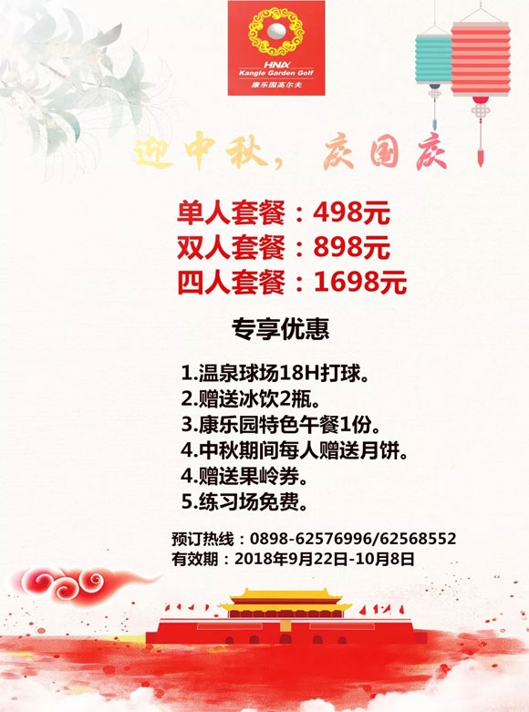 中秋★国庆,康乐园高尔夫节日特惠: