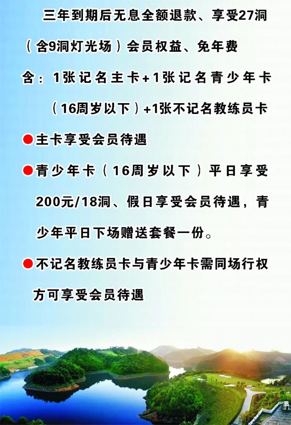 湖南青竹湖高尔夫球会保证金亲子卡限时发售