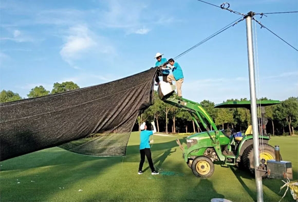 球会从7月16日开始拉网,每天早拉晚收,直至8月27日拆网,近50天的高温天气,精心养护,球场果岭安然度夏。