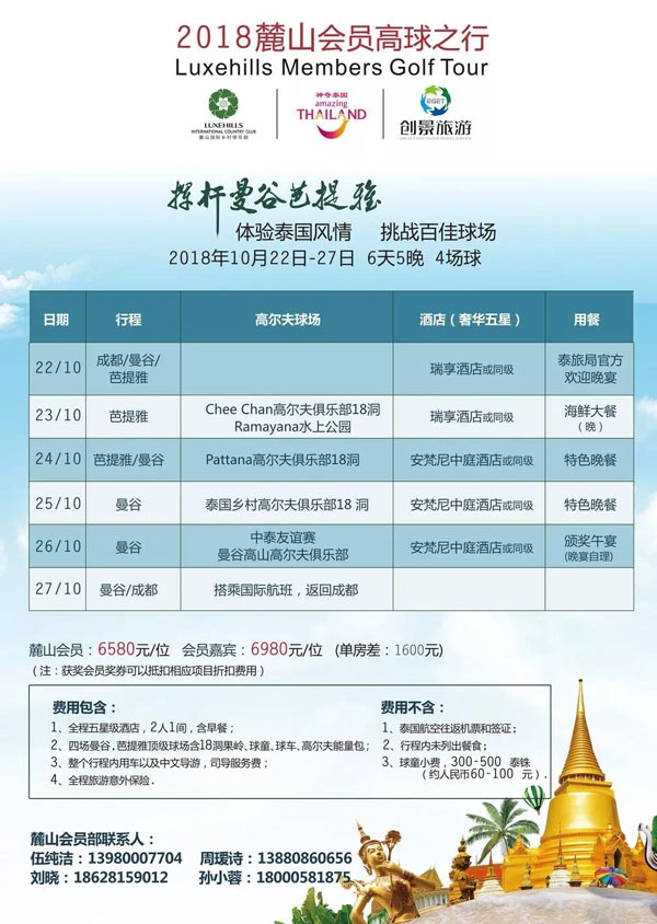 2018成都麓山会员高球行-10月挥杆泰国抢位开始