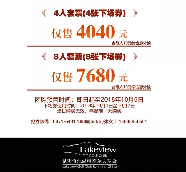 4040元/4人 昆明滇池湖畔高尔夫国庆节团购优惠