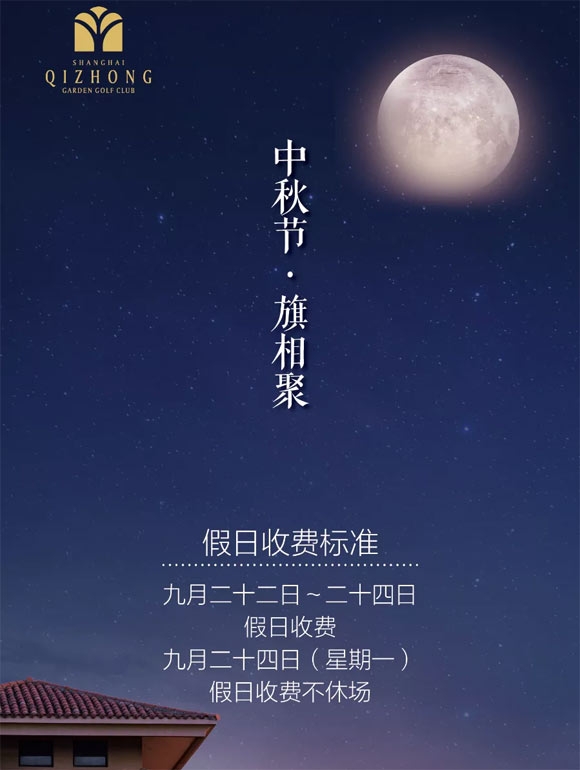 “阴晴圆缺都休说,且喜人间好时节”。中秋月圆,寓意阖家团圆。中秋将至,上海旗忠花园高尔夫俱乐部预祝所有会员朋友中秋节阖家欢乐,幸福美满。节日期间,旗忠将对节假日收费标准做以下调整: