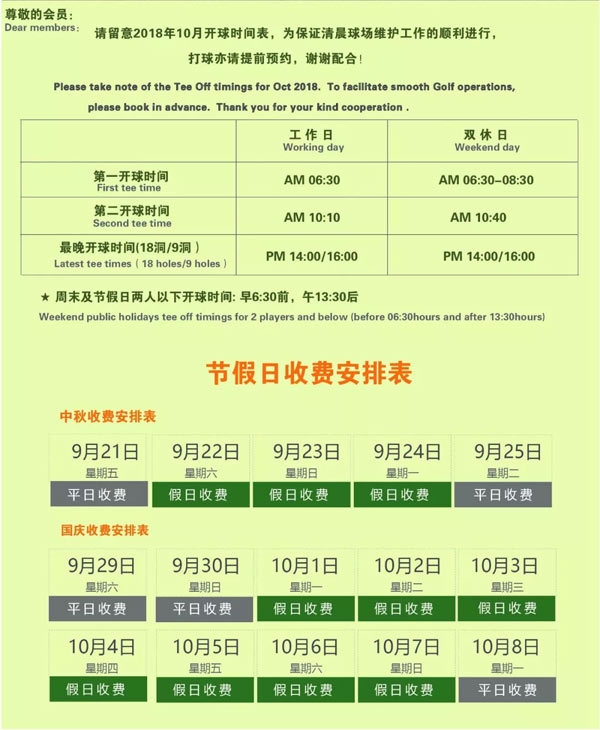 苏州太湖国际高尔夫十月开球时间表及假日收费标准