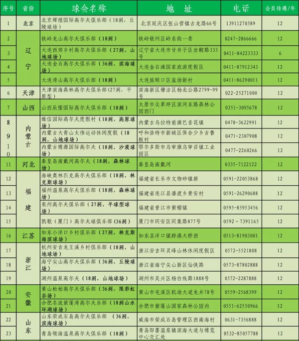 秦岭国际高尔夫俱乐部一直致力于为各位会员提供增值服务,签订更多更优质的联盟球场供大家外出订场选择,以丰富和满足大家外出订场的需求,现已在全国各地共签订了66家联盟球场,2家协议球场,让您在我俱乐部感受高尔夫本身带来的视觉和高球享受之外,更能为您在外出工作、生活、旅途体验不同的球场提供便利服务,让您结识更多的球友!