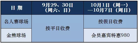 上海美兰湖高尔夫俱乐部十月份营业安排