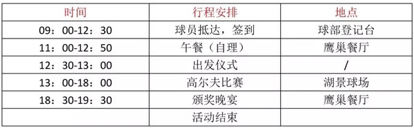 参赛球员: 会员及会员嘉宾及高尔夫爱好者