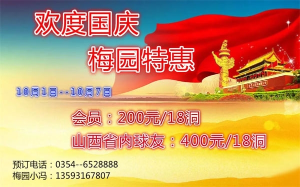 喜迎国庆!山西梅园国际高尔夫球会钜惠