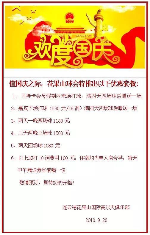 580元/18洞 连云港花果山高尔夫国庆假期优惠套餐