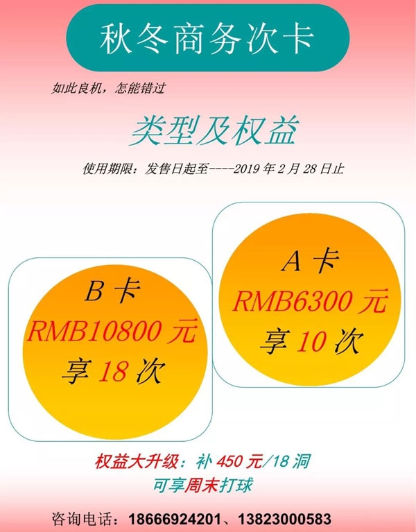 珠海国际高尔夫俱乐部秋冬商务次卡