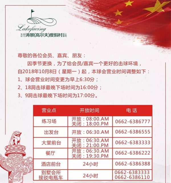 广东阳江涛景高尔夫球会营业时间调整通知