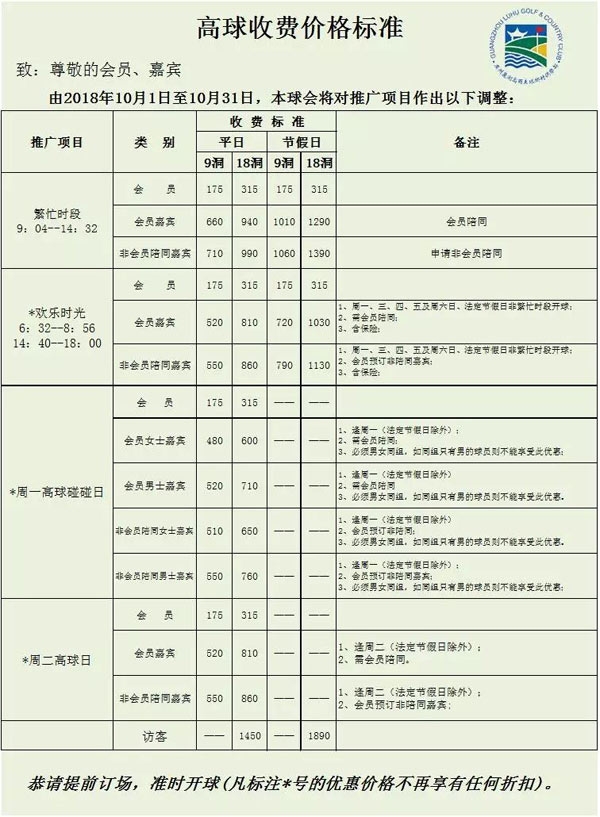 广州麓湖高尔夫球乡村俱乐部最新收费标准