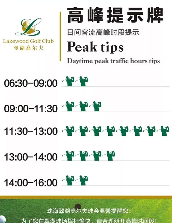 珠海翠湖高尔夫球会冬令时开场时间调整