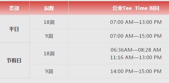 1. 平日14:00-15:00PM下场已经完成9洞击球者,后9洞因日照或场上拥堵而无法完成18洞击球者,均按18洞收费。
