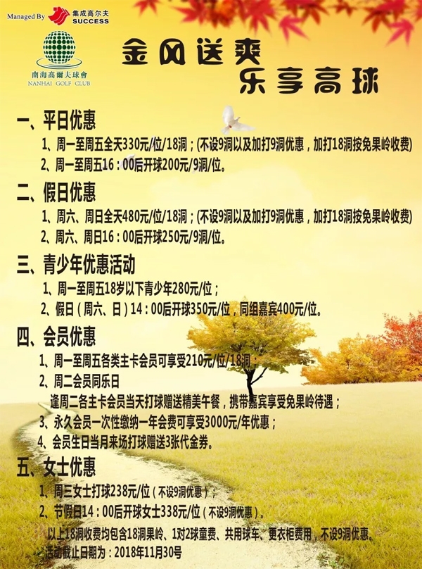 金风送爽 佛山南海高尔夫球会11月优惠